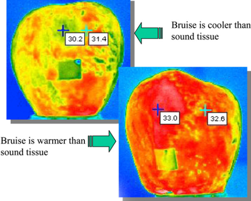 圖為紅色美味蘋果的紅外熱像圖